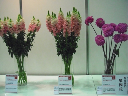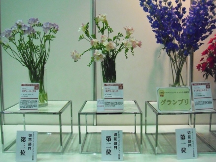 今年の人気投票グランプリはF1アリエルブルー(デルフィニウム)でした。もちろん切花部門も第一位です。私は3枚目の百合の花がきれいだなと思いました。