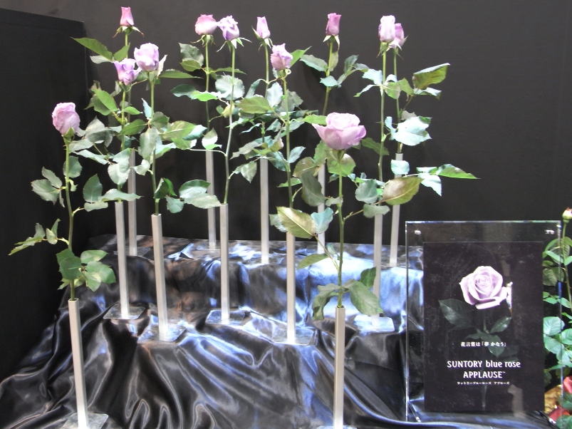 サントリー ブルーローズ アプローズは「サントリーホールディングス」とオーストラリアのバイオベンチャー企業「フロリジン」が共同で開発した、世界で初めて青い色素を花弁にほぼ100%含む青いバラです。従来のバラにはない、夜が明けたばかりの空を思わせるほのかな青さと、華やかでみずみずしく上品な香りが特長。アプローズとは英語で『喝采』という意味だそうです。エレガントな美しさのバラでした。