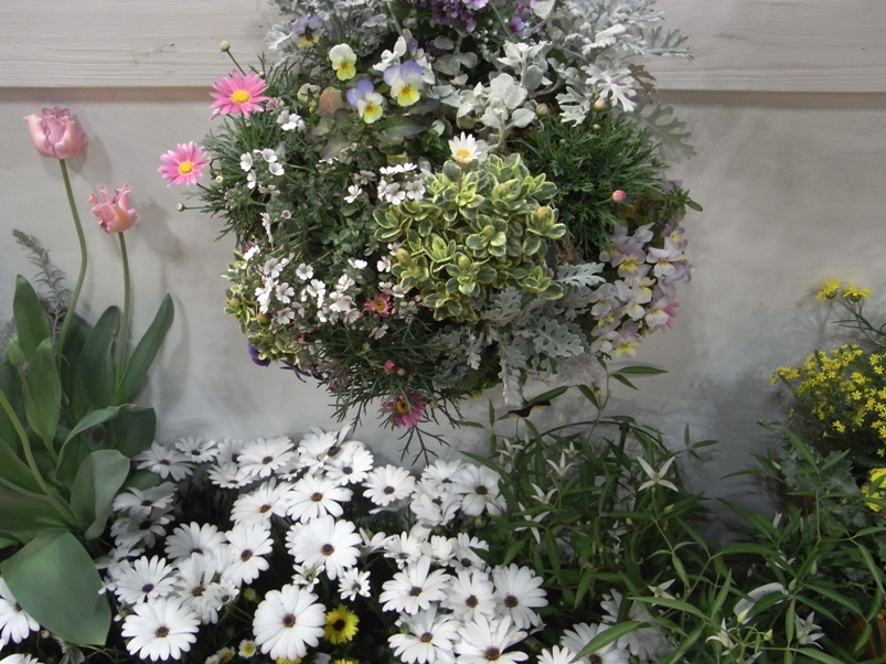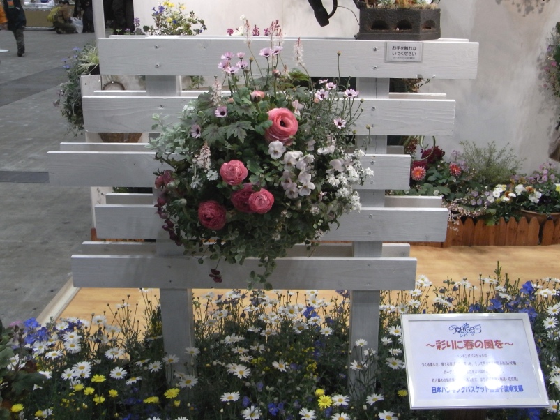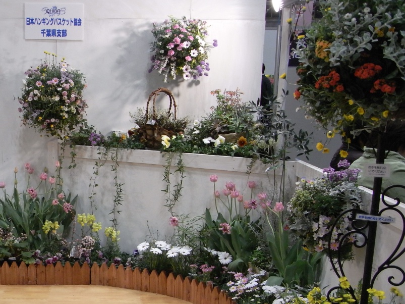 今回は「第20回日本フラワー&ガーデンショウ」の千葉県からの特別出展を紹介します。千葉県からは”花を活かした地域づくり”や”千産千消”を行っている9団体が出展しました。そのうち『日本ハンギングバスケット協会千葉県支部』と『丸朝園芸農業協同組合花卉部』のブースを撮ってきました。まず『日本ハンギングバスケット協会千葉県支部』のブースの写真です。