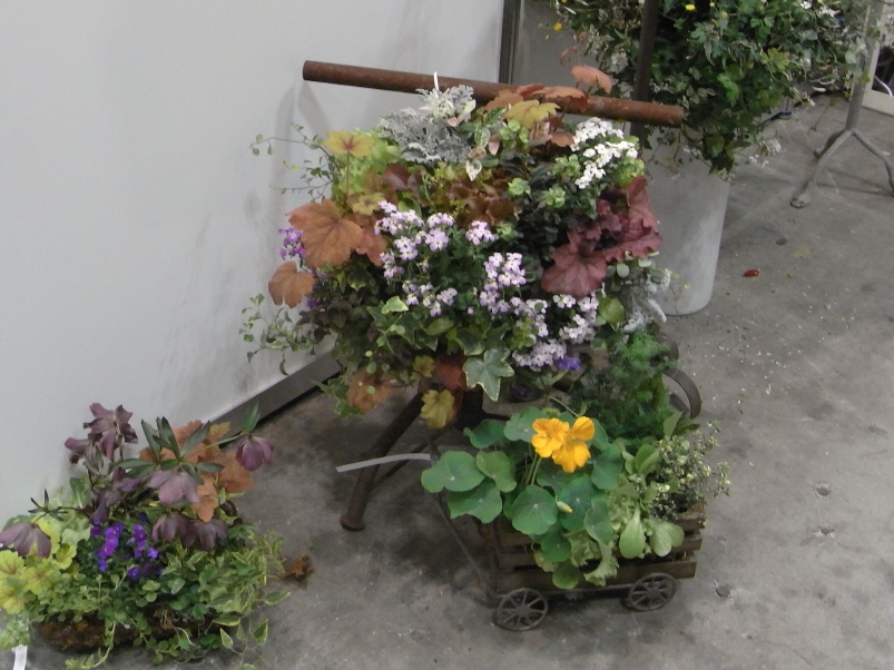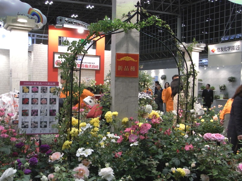 ゆっこが一番時間をかけてお買い物したブースです。上の写真は2009年秋発表バラ新品種のコーナーです。下の写真はブースの隅にあった可愛い寄せ植えです。次は『ハイポネックスジャパン』です。