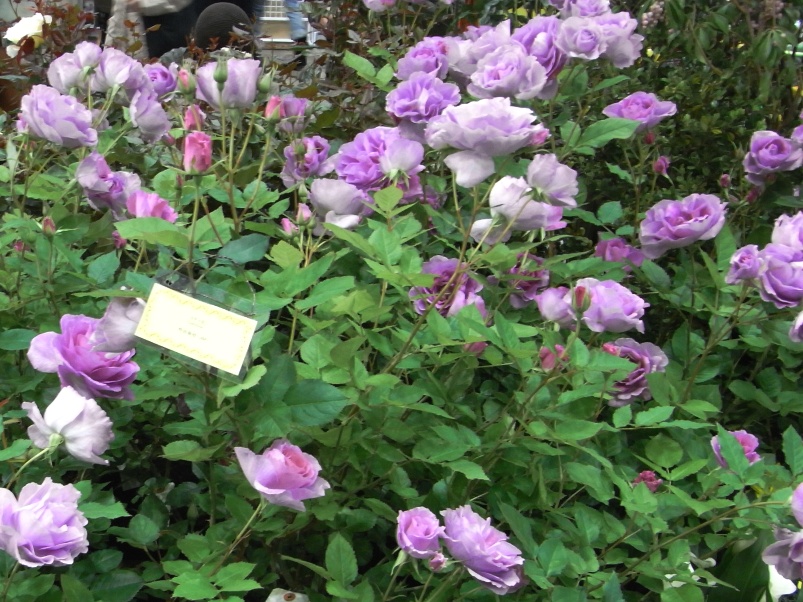 画像をクリックすると大きいサイズで見る事ができます。上の2枚は展示コーナーの前に飾ってあったバラのハートやボックスです。とっても可愛かったです♪その下がバラの品種展示コーナーのバラです。上がサントリー ブルーローズ アプローズ、下がヴァリアンセです。