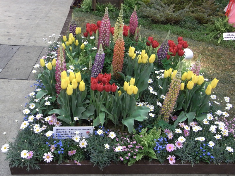 今回のテーマは『よろこび発見!花と野菜の健康ガーデング』です。シンボルフラワーはラナンキュラス。シンボルフラワー展示コーナーでは、切花800本と鉢植え300鉢が春の球根と共に展示コーナーを飾りました。今回はシンボルフラワーの花壇の写真を載せますね。