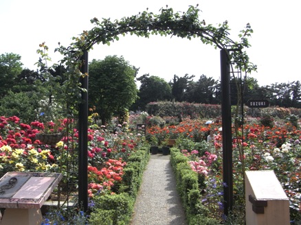 最後は鈴木省三コーナーです。バラのアーチにはSUZUKIと書かれた名札がついています。