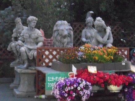 ガーデンセンターはオブジェもあちこちに置いてありました。売場からちょい離れた自転車置場の横にも置いてあって、こんなとこにもと驚きます。