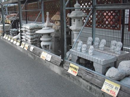 ガーデンセンターはオブジェもあちこちに置いてありました。売場からちょい離れた自転車置場の横にも置いてあって、こんなとこにもと驚きます。