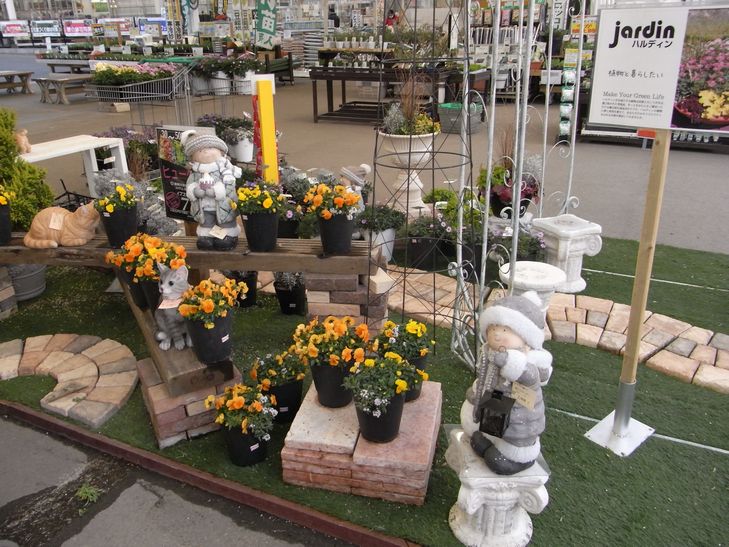 ディスプレイもあちこちにありました。こんな感じにしてみたいですよねえ。などと思いつつ歩いていましたが、まだまだ寒い時期だったので屋内へ。