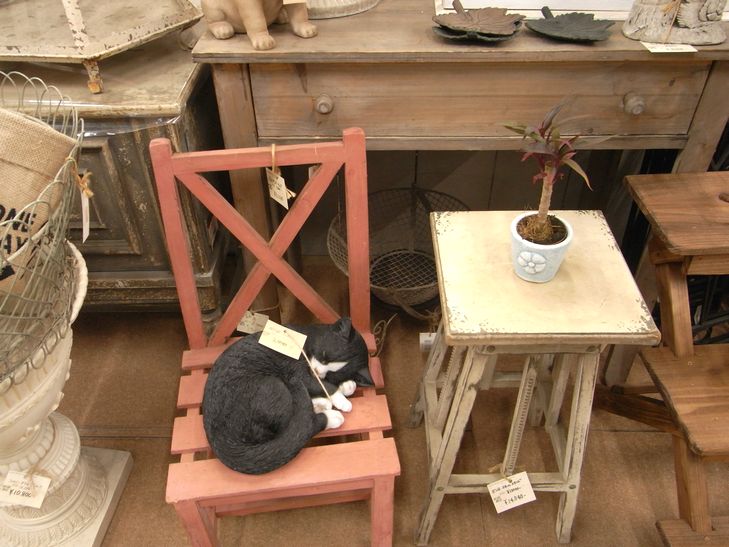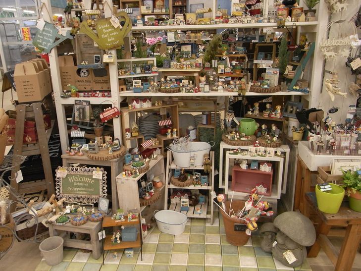 屋内にはかっこいいガーデングッズが売っています。アンティークっぽい物が多かったです。下の写真はちっちゃいガーデングッズなんですよ。箱庭風の寄せ植えに良さそうですね。この画像はクリックすると大きいサイズで見れます。