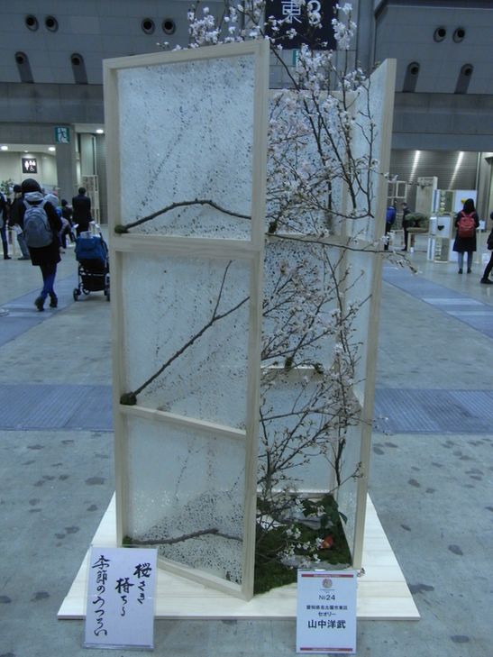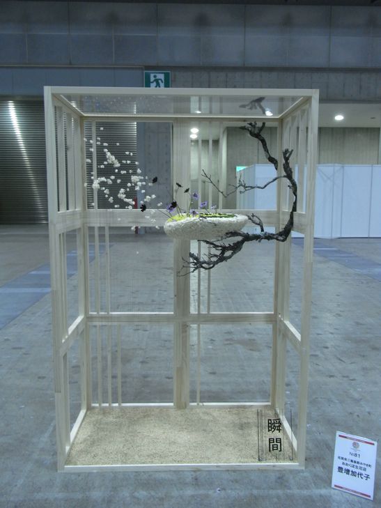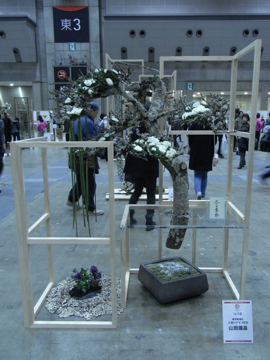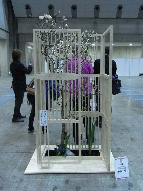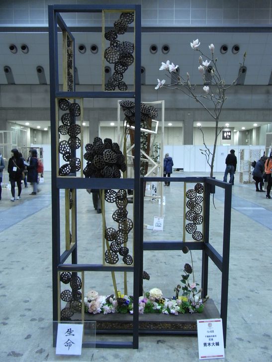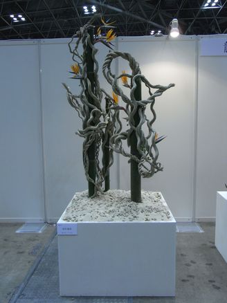 こちらの大作は錦花池坊が手掛けています。流れるように配された木が迫力ありました。次の大作を手掛けたのは一葉式いけ花です。