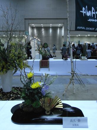 いけばなでありながら、花器や花、アレンジがまさしくインターナショナルという作品が多く、見ていておもしろかったです。厳かな雰囲気の日本いけばな芸術協会展示に比べて、自由で明るくリラックスした雰囲気でした。