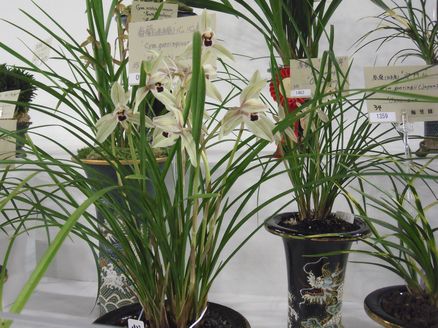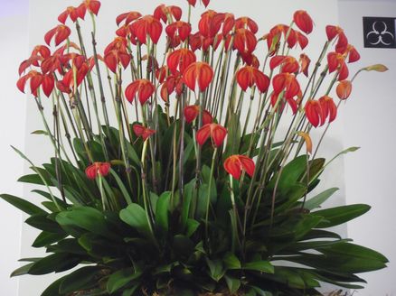 25周年を迎える第25回は、国内初公開となる蘭の妖精オルキスや、英国のバッキンガム宮殿、ヨーロッパの大財閥ロスチャイルド家ゆかりの品種など、アニバーサリーイヤーにふさわしい展示となったそうです。また25周年のオーキッドロードは空間デザイナーの長谷川喜美さん(ベルベッタ・デザイン)がプロデュースしました。25周年特別企画として、フラワーアーティストMassa Nakagawaさんと華道家の假屋崎省吾さんの豪華競演2大アレンジメントディスプレイもありました。ゆっこは色々撮ってきてくれたので、まずは鉢植えの作品から紹介します。さいしょはこちら。