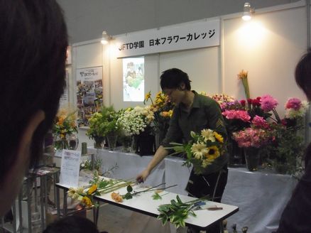 こちらはJFTD学園(日本フラワーカレッジ)卒業生によるデモンストレーションです。きれいな花束ですね。ブースでは入学希望者への学校説明も行っていました。花育ワークショップもありましたよ。