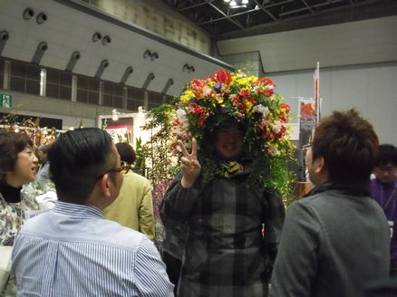 こちらはフラワーマーケット&フラワートレードショーです。フラワーマーケットでは切花・鉢物・苗物・その他花関連商品の展示・販売が行われました。ゆっこも切花や苗物をいくつか買っていました。フラワートレードショーでは花き関連メーカー・商社等が一堂に会するプロのための日本最大級のビジネスショーです。花を頭にのせている男性は自ブースを宣伝していたようですよ。他にフラワースクール、日本を応援しようコーナー、東北復興支援ブース、飲食コーナーもありました。東北復興支援ブースでは『ラグノオ』のパティシエのりんごスティックを今年も買いました。トースターで軽く焼いて食べると美味しいんですよ。飲食コーナーは『花畑牧場』が出店していたので、コーヒー買って飲みました。私が買ったのって食べ物と飲み物ばっかでしたw